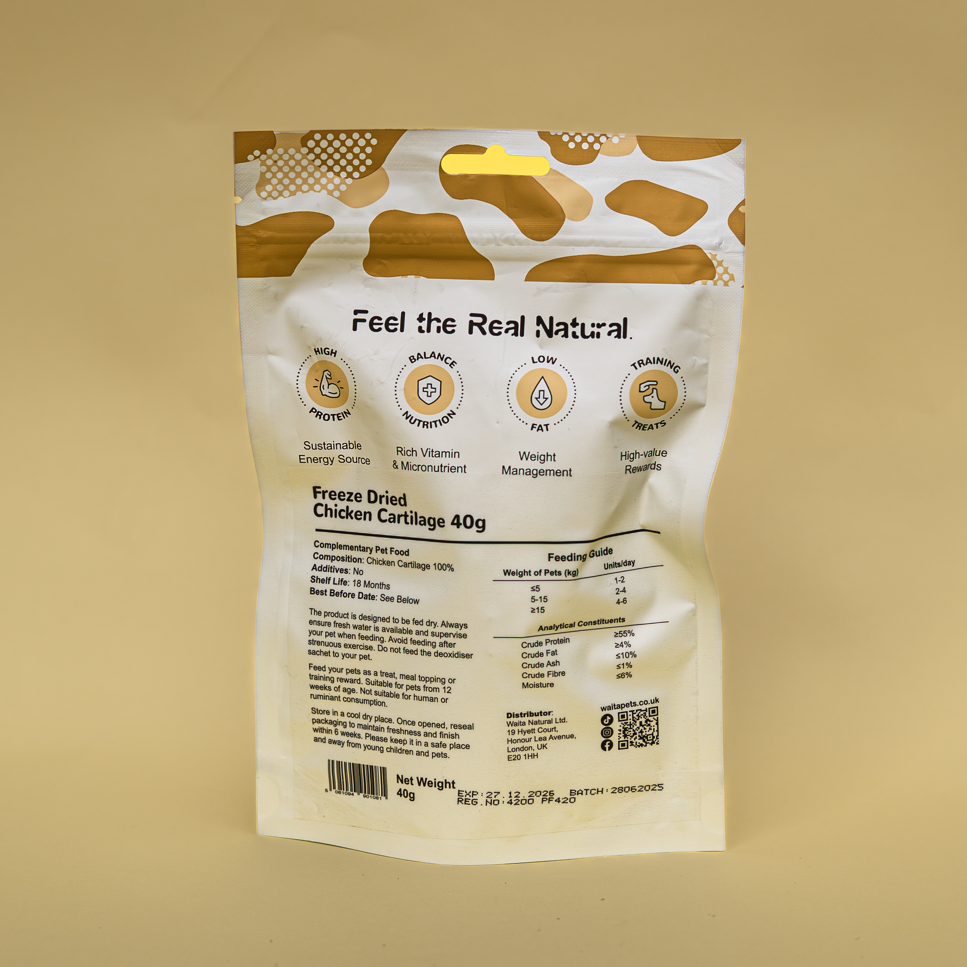 Waita Freeze-Dried Chicken Cartilage is made from 100% premium chicken cartilage, gently freeze-dried to preserve its natural nutrients and functional benefits. Naturally rich in collagen, glucosamine, and chondroitin, this joint-supporting superfood helps maintain mobility, flexibility, and long-term bone health.